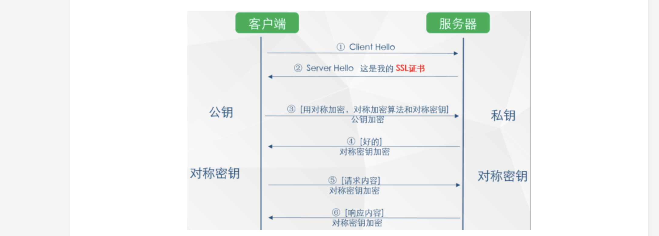私钥解密,提取出对称加密算法和对称密钥,这时客户端和服务器端都有了对称密钥 - 从第4步开始,双方都使用