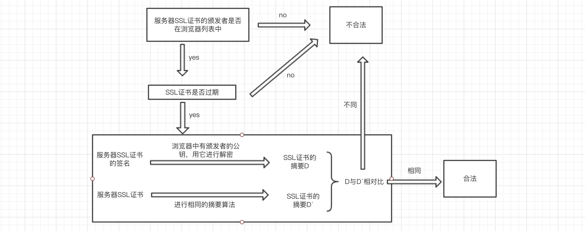 摘要算法计算出服务器发来的证书的摘要,将这个计算的摘要与证书签名解密出的摘要做对比 - 对比结果一致,则证明服务器发来的
