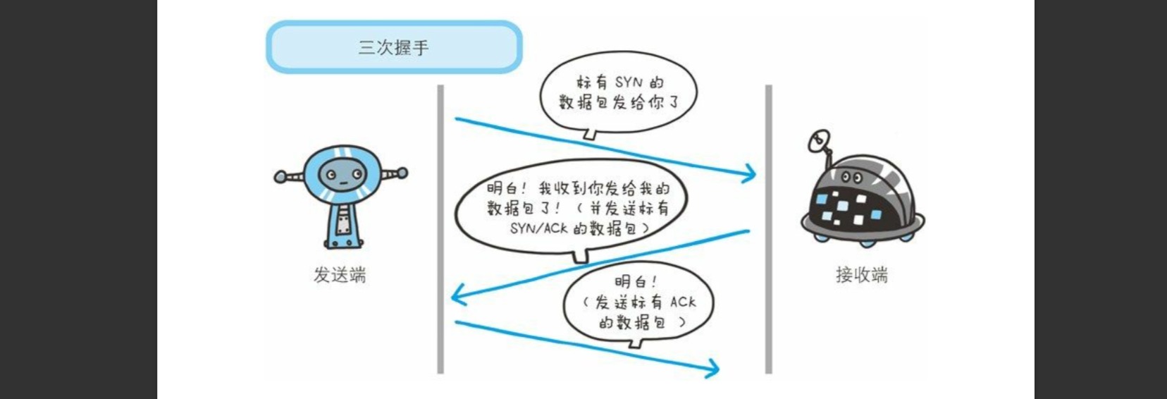 SYN和ACK:发送端首先发送一个带有SYN的标志给对方,接收端收到后,发送一个SYN/ACK标志的数据包,表示确认收到,最后,发送端再发送一个ACK标志的数据包,代表“握手”结束。![]()