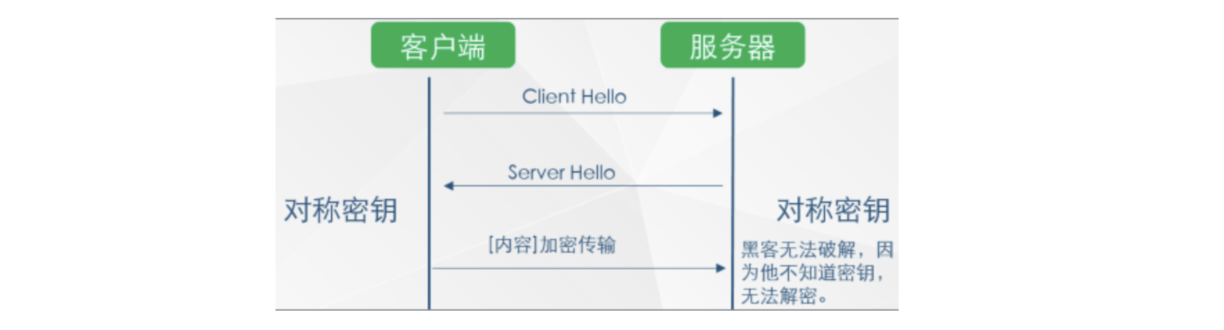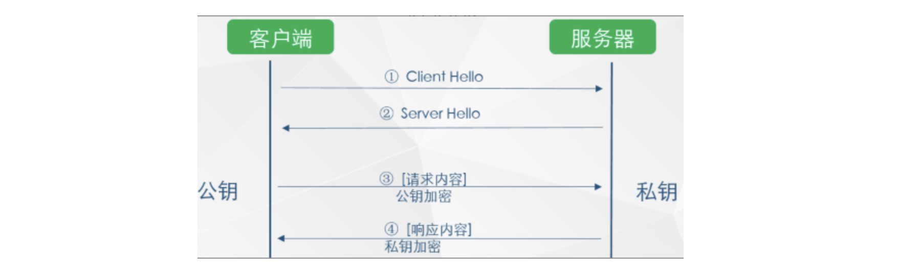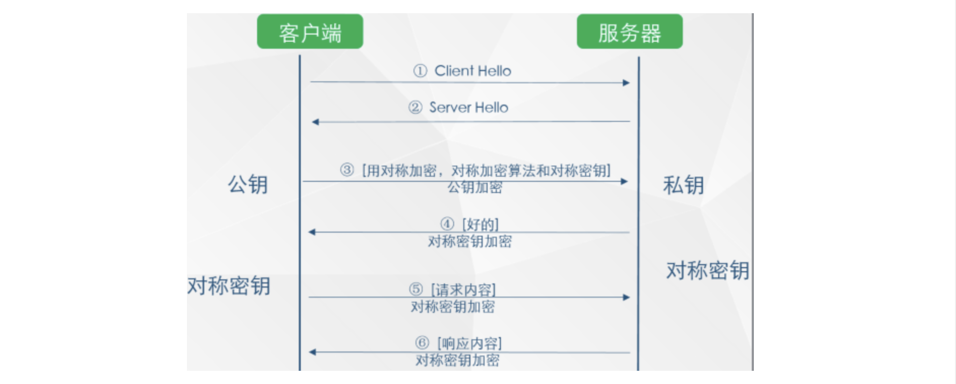 非对称加密,客户端用公钥加密,将对称加密算法和对称密钥传输给了服务器 - 服务器收到信息后,用