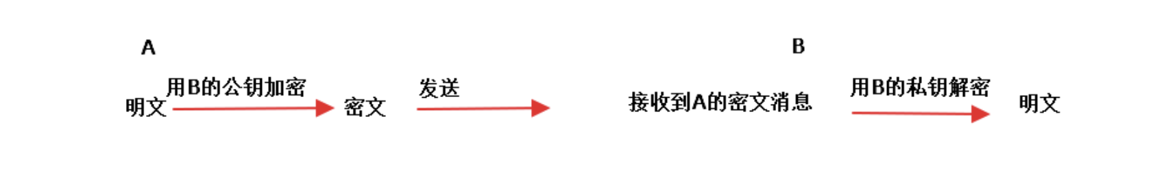 假设现在有通信双方A和B,两者之间使用两套非对称加密机制,现在A向B发消息:![]()