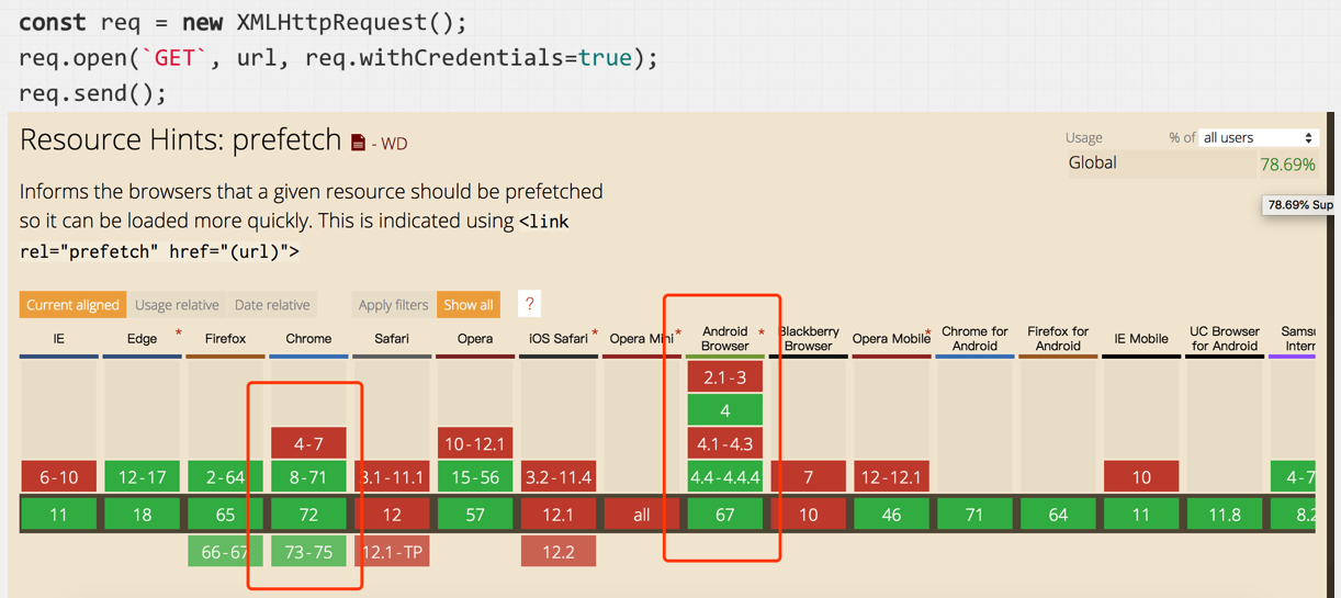 <link rel="preload">大约有 50% 的支持度,<link rel="prefetch">大约有 70% 的支持度。