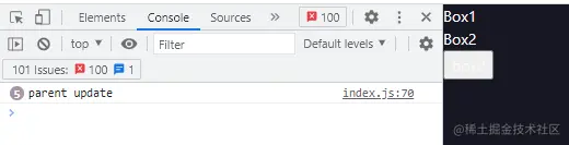 console.log('parent update'); return ( <div> {children} <button onClick={() => setCount(count + 1)}>box2</button> </div> ); };